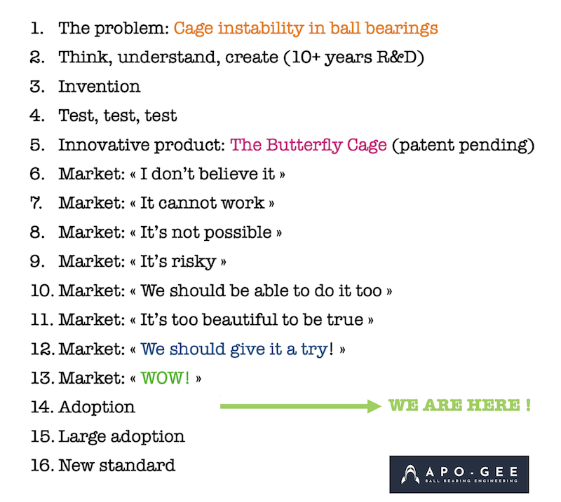As the global bearing industry enters a period of renewed technological ambition, APO-GEE stands at the center of one of its most compelling shifts. After more than a decade of research dedicated to solving cage instability, a problem acknowledged for more than fifty years, the company is now experiencing the first waves of industrial adoption. But 2026 will not simply continue this trajectory: it will open a broader chapter, marked by the emergence of a second breakthrough technology and significant strategic evolutions.