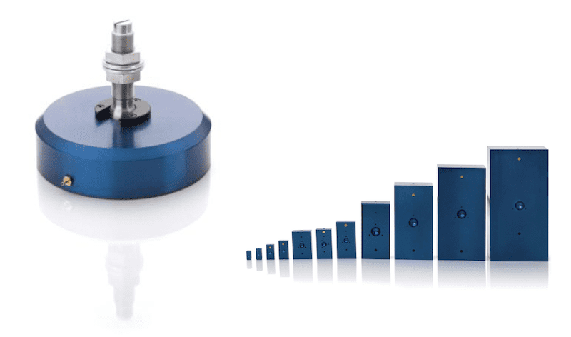 The modular radial air bearings also have the advantage of being kinematically correct. This is to say they are consistent with the exact constraint theory. Therefore, three radial air bearings could be used to constrain an axis of rotation for the same reason that a three-legged bar stool cannot rock. Modular flat air bearings from New Way can be used to constrain axial motion in the same way. It is also convenient that because the exact force paths are known through the bearings and into the structure, FEA analysis is simplified by neat, closed form equations.