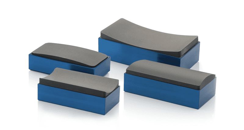 Radial air bearings constrain motion from an OD or an ID, and so are offered in concave or convex configurations. These bearings are game changers, able to eliminate center shafts and 360-degree steel races. Typically, radial rolling element bearings have an inner and outer race that goes 360° around the rotating body. These very hard races and the rolling