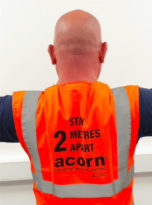 When moving throughout ACORN’s 40,000 sq/ft building, staff are also required to wear specially produced high-vis vests with the 2 Metre distancing message printed on the back, which serves as a reminder to all employees to take the appropriate measures.