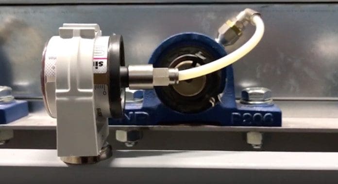 More than 160 automatic simalube lubricant dispensers are installed on a Benteler plant for the production of laminated safety glass.