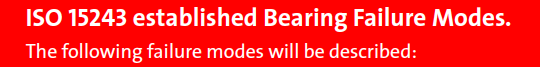 - To emphasize the importance of understanding the different bearing failure modes according to the ISO 15243 will also be pointed out as these in many cases will clearly and directly indicate the failure causes.