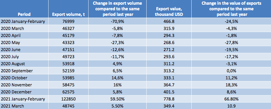 Export of bearings from China January 2020 – March 2021