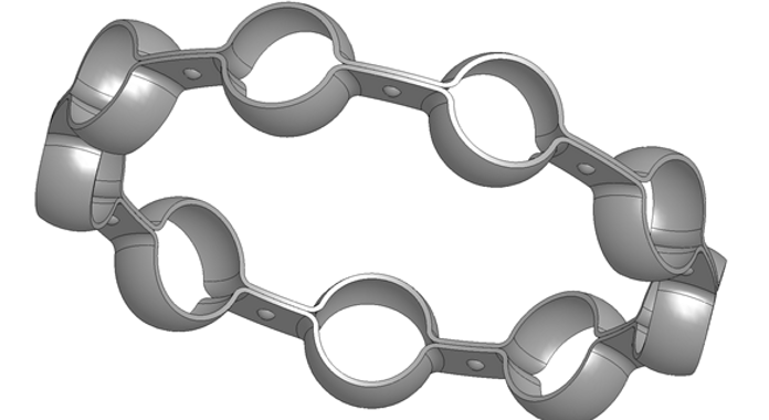“RJ” Type: This type of cage is suitable for larger bearings (bore diameters over 10mm) with high load carrying capacities. It is a two piece ribbon consisting of two halves that are assembled one half from one side, and the other half from the opposite side. The two pieces are riveted together and are strong enough to with stand higher levels of vibration and acceleration. This type of cage is guided by the balls. Material is type 302 stainless steel or carbon steel sheet.