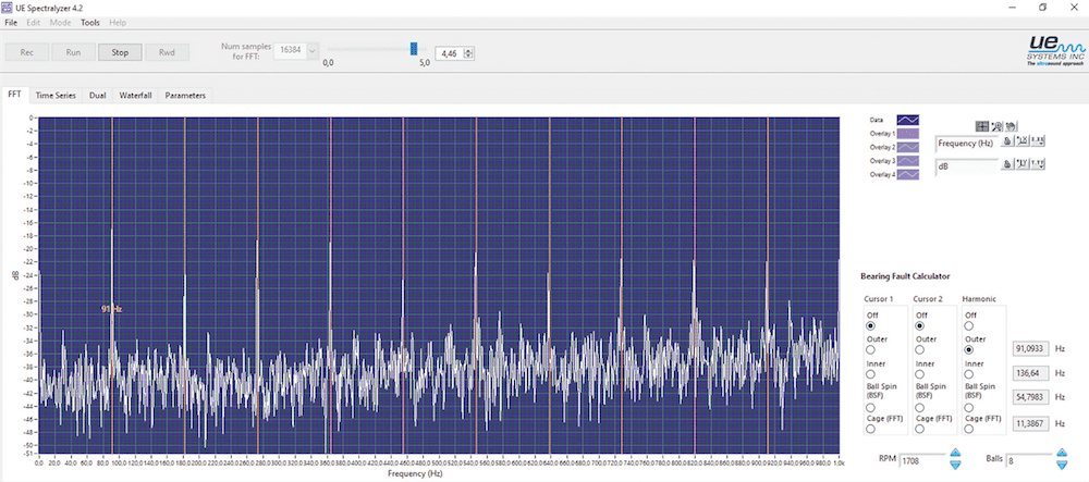 Mechanical inspections with ultrasound include diagnostics such as bearing faults, pump cavitation, and valves condition. When it comes to bearings, users usually monitor their condition by relying on what they hear through the headset or by trending decibel levels. This is a simple and effective method.