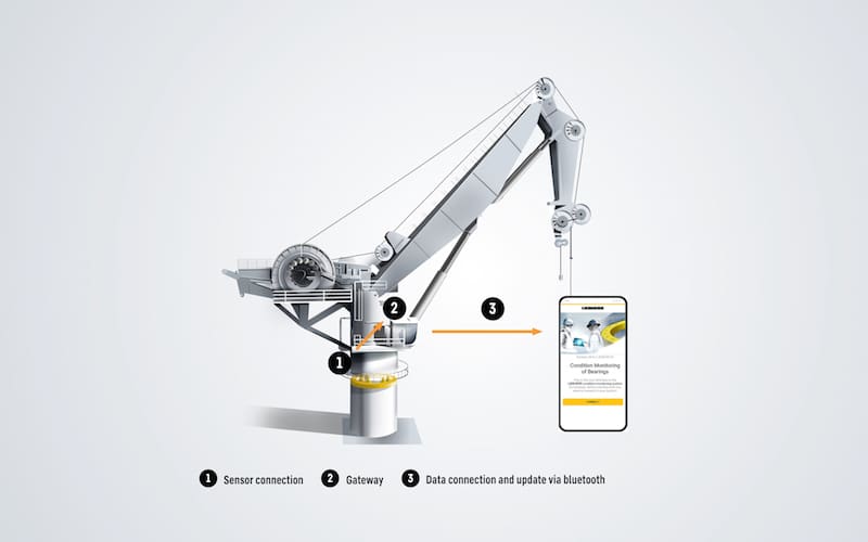 With the condition monitoring system for slewing bearings, Liebherr has created a digital monitoring system. The integrated wear measurement system, bearing clearance monitoring (BCM), ensures optimum remote monitoring of the slewing bearings in various applications, such as mining, material handling or maritime equipment. The BCM system can be used to measure bearing wear in axial and radial directions, as well as tilting clearance. Such a remote diagnostics does not only ensure flexibility in measurement, but also reduced downtime, lower costs in maintenance and, above all, higher personal protection.