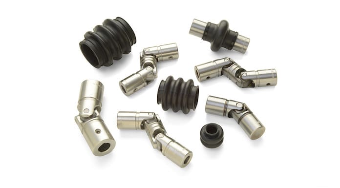 Components are selectively heat-treated and ground for higher strength compared to competitor friction-bearing universal joints, giving them a precise and prolonged life. Single universal joints are best suited for space-constrained applications with angular misalignment up to 45 degrees. Double universal joints are designed for applications with a wide distance between shafts or those in need of extreme angular misalignment accommodation up to 90 degrees.