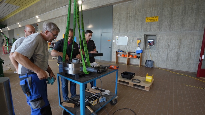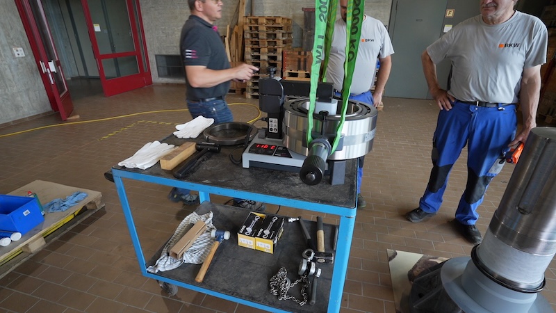 A brief chat with staff revealed: A new bearing was soon to be installed — but the necessary tools were missing. Although the customer had already built a custom handling device, they were looking to hire an external expert for the actual installation.