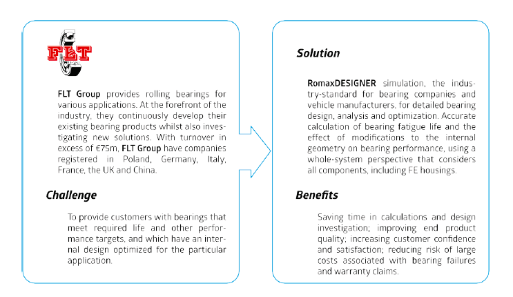 We use RomaxDESIGNER far complex analysis of FLT bearings in a particular application and working condition, to provide our clients with bearings of the highest quality possible. Marek Zalubski , Technical Advisor at FLT Polska