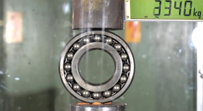 Videos How Strong Are Ball Bearings? How Fast is the Shrapnel? Hydraulic Press Test! By BearingNews - April 29, 2020 How hard ball bearings or bearing balls are? They use our 150 ton hydraulic press and 150 ton force sensor to find out! Don’t try this at home! All slow motion clips are filmed with Chronos 1.4 high speed cameras.