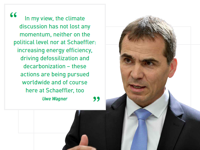 In my view, the climate discussion has not lost any momentum, neither on the political level nor at Schaeffler: increasing energy efficiency, driving defossilization and decarbonization – these actions are being pursued worldwide and of course here at Schaeffler, too. The key objective driving all of these efforts is that the energy consumed has to become increasingly carbon-neutral. And this objective should mainly be achieved by focusing on the development of sustainable technologies. In this context, the renewal of car fleets is an equally important aspect as the efficiency enhancement of existing technologies. Both are going to soon lead to positive results. Of course, aside from this, it’s important to develop an awareness of our personal carbon footprint: less travel, both privately and for business, intensified remote work, more conscious consumption, plus support for new mobility concepts are possible aspects that benefit our climate.
