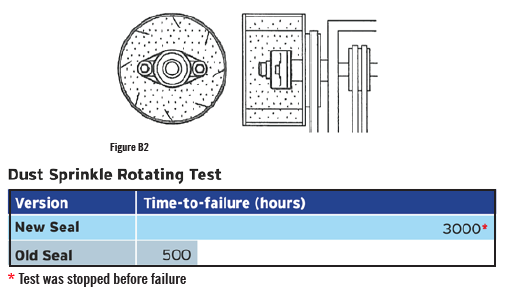 The new seal design showed considerable improvement in a dust sprinkle rotation test as can be seen in Figure B2 and was selected as the new standard for the Koyo JHS-3i Pillow Block.