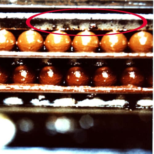 Severe friction resulted in serious wear on the rolling contact surface of raceway and/or balls.