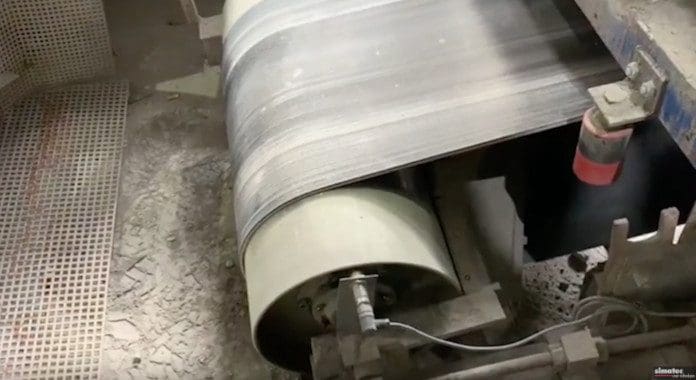 A maintenance professional demonstrates the installation of an automatic lubrication on a conveyor belt drum in a quarry. The big advantage for the quarry operator is that the conveyor belt drum no longer needs to be lubricated manually, now being continuously lubricated during operation by the simalube installation.