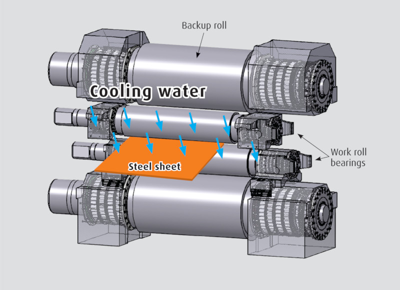 NSK has developed its latest four-row tapered roller bearings for rolling mills to offer a number of class-leading performance and environmental benefits. The work roll bearings use newly developed, water-resistant grease that is fully sealed into the confines of the bearing. With the new bearings, service life is typically doubled in challenging conditions such as those where there is a high risk of water penetration. In addition, the sealed design means that grease consumption is far less than that exhibited by a conventional ‘open’ bearing, while the risk of contaminating the environment is greatly reduced.