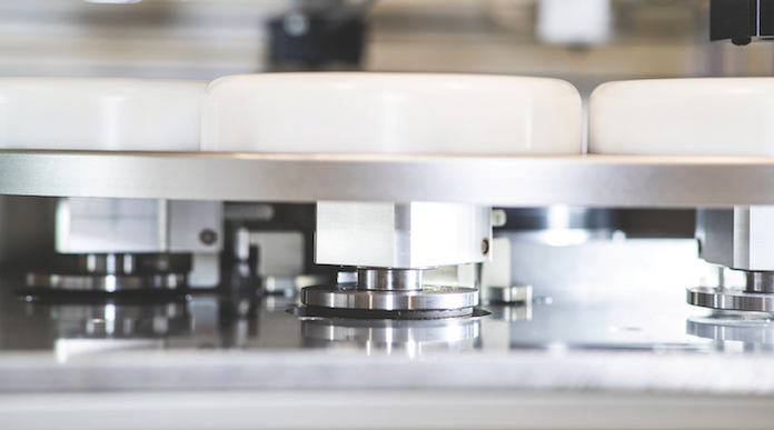 The clutch was mounted at three stations and is triggered at the appropriate station prior to spinning up. While this is not a typical use for the friction clutch, it held the most promise since its torque profile met the needs of this application. With the friction clutch engaged, the servo would then accelerate in 0.25 secs to 3000 rpm and hold speed throughout the specific process until stopped, at which point the clutch is disengaged. As a precaution, the mechanism was fitted with a sensor to detect any slippage. Initial testing using the servo driven friction clutch showed that no slippage occurred and that the solution provided the necessary spin function – while also simplifying the design, saving costs, and minimizing space requirements.