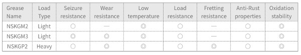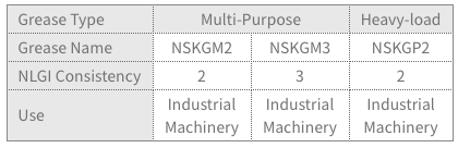 The lineup, which features lithium-soap thickened, mineral oil-based grease, includes two multi-purpose greases designed for use under normal operating conditions and one grease designed for heavy-load scenarios. The NSK Grease lineup is characterized by excellent water-resistance, excellent corrosion-resistance, low-evaporation, and a wide functional temperature range (-10 to 110℃). Designed in Japan with product planning by our Singapore division, the lineup will first be available in ASEAN/Oceania countries, with worldwide availability soon to follow.