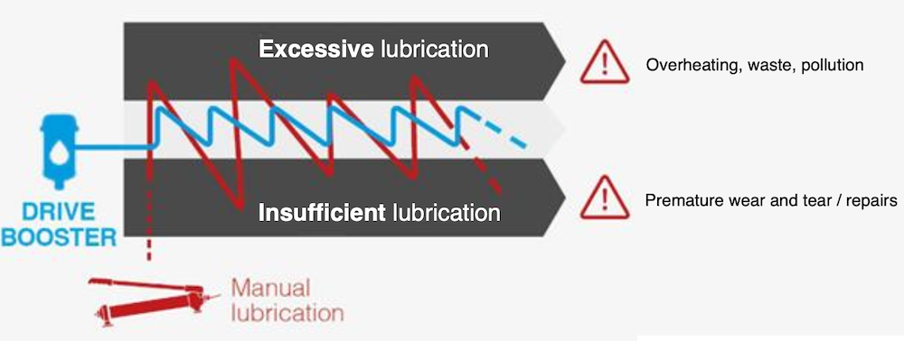 Simplify and optimise maintenance: Managing lubrication with the DRIVE BOOSTER makes equipment more reliable, allows work to be scheduled and frees up time for other operations.
