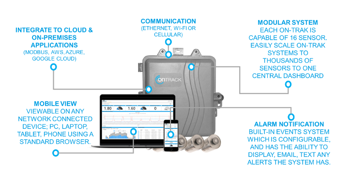 The On-Trak accommodates up to 16 channels and is built to scale from one system to hundreds, utilizing unique IDs and factory configuration, simply plug in, connect and data will be streaming in minutes.