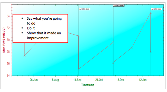 A successful migration from Planned to Predictive lube tasks is earmarked by message changes. “Inspect Bearings and Grease as Necessary” is replaced with “Take Ultrasound Readings and Grease ULTRASONICALLY Based on Need.”