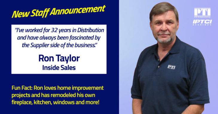 Ron Taylor joins the growing PTI / IPTCI team to serve on our Inside Sales team. He will be quoting and processing orders and helping customers with part selection. He looks forward to getting acquainted with our customers.