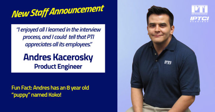 Andres Kacerosky is our new Product Engineer. He is responsible for making new product models and drawings, answering technical product questions, and designing new product groups.