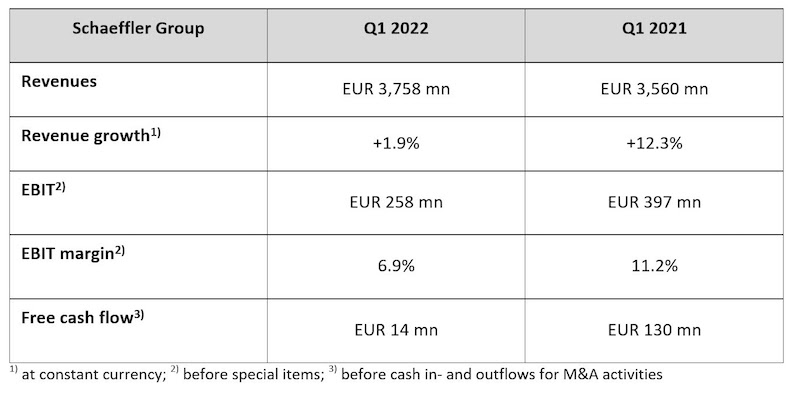 Global automotive and industrial supplier Schaeffler released its new full-year guidance for 2022 today. On 8 March 2022, the Board of Managing Directors of Schaeffler AG had suspended the full-year guidance 2022 adopted on 22 February 2022, when the annual financial statements were prepared, due to the developments in Ukraine in the days following the approval of the annual financial statements. For the first quarter 2022, the following key financials are pre-released.