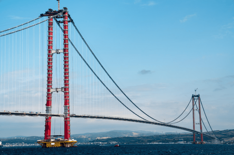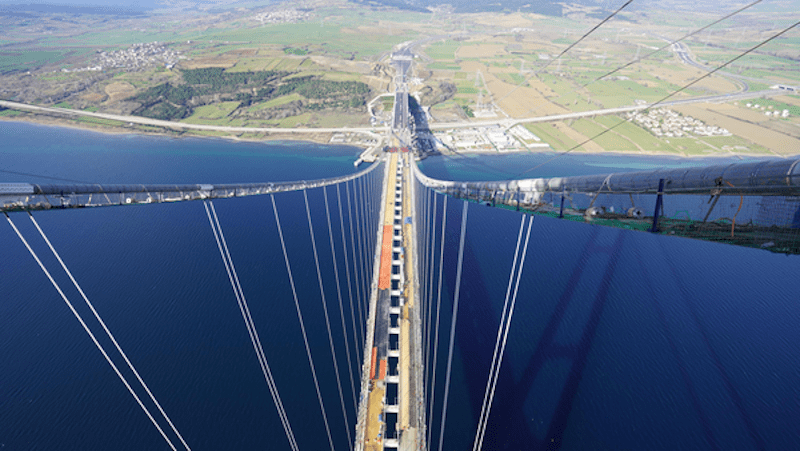 The 1915 Çanakkale Bridge spans a distance of more than 4 km across the Dardanelles strait in the north-west of the country. It forms part of a larger road construction project worth more than €3 billion.