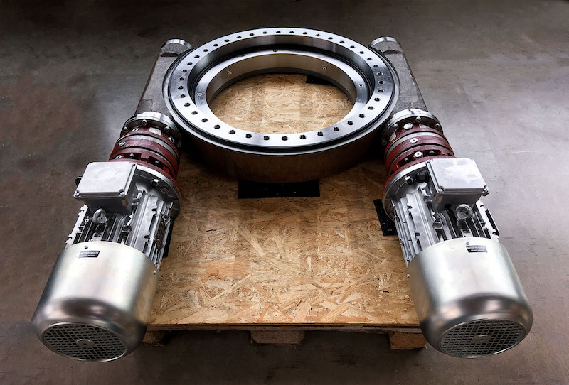 Our slew drives can be powered electrically, offering clear advantages: They reduce noise emissions and do not require hydraulic oil, which prevents the risk of oil leaks. Electrically driven slew drives are ideal for applications, where no hydraulic systems are used. They offer a clean solution, especially in sensitive environments. The electric motors are also highly adaptable and can be combined with various gears. Thanks to intermediate flanges, motors can be easily integrated and installed in a space-saving manner. Electrically powered slew drives excel in precise positioning tasks, as their power control allows for accurate movements.