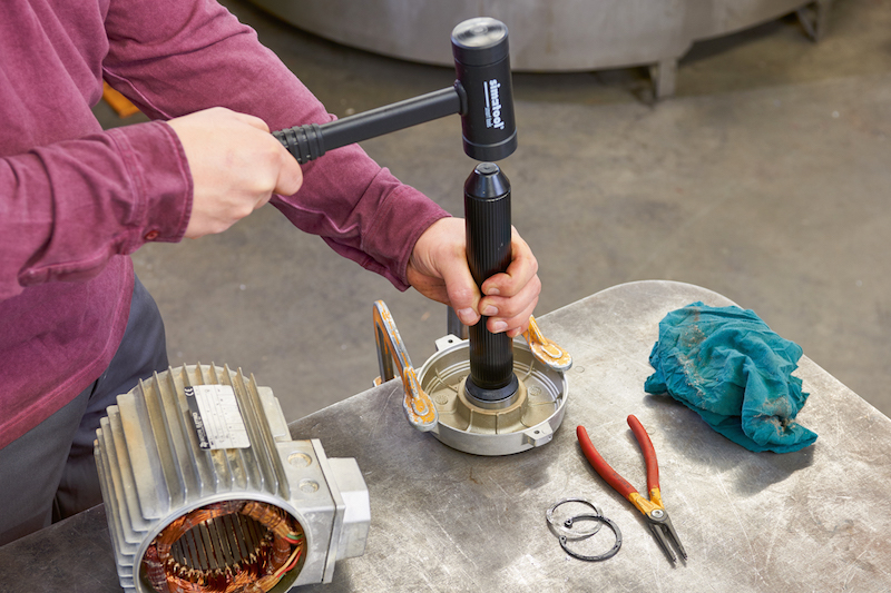 The Twin Puller TP 150 toolset enables the dismounting of deep groove ball bearings and radial shaft seals. A significant advantage is that the shaft does not have to be removed during the process.