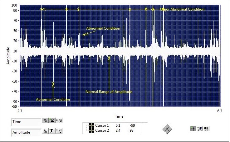 Especially for slow speed bearings, one must rely on the sound quality and the sound pattern. For this, it is necessary to use an ultrasonic instrument with sound recording capabilities, like the Ultraprobe 15000, and then analyse the sound file on a sound spectrum analysis software like the Spectralyzer from UE Systems. Then, maintenance professionals can simply record the sound produced by a slow-speed bearing, load the file in Spectralyzer and analyse it in the Time Series view.