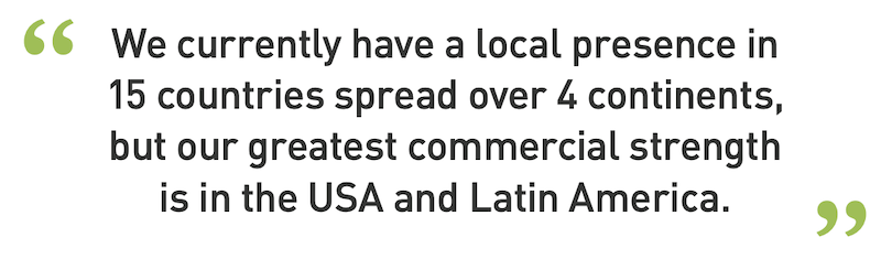 Being part of a global company gives us access to all the experience and expertise of our network of specialized workshops and engineers and to a worldwide supply management system that ensures demand is always met. As mentioned, we currently have a local presence in 15 countries spread over 4 continents, but our greatest commercial strength is in the USA and Latin America.