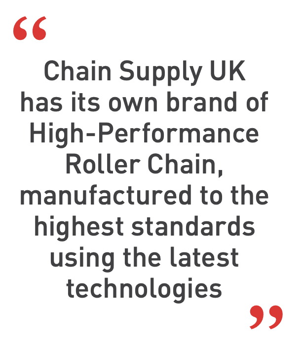 Chain Supply UK has its own brand of High- Performance Roller Chain, manufactured to the highest standards using the latest technologies. We stock a full range of chains, including solution chains, offering Maintenance Free, Stainless Steel, and Straight Side-plate for conveying applications. CSUK can also source standard and specialist industrial chain from various chain manufacturers around the world. Our innovative approach also includes innovative sprocket design to extend the life of the chain and sensors to assist with predictive maintenance.
