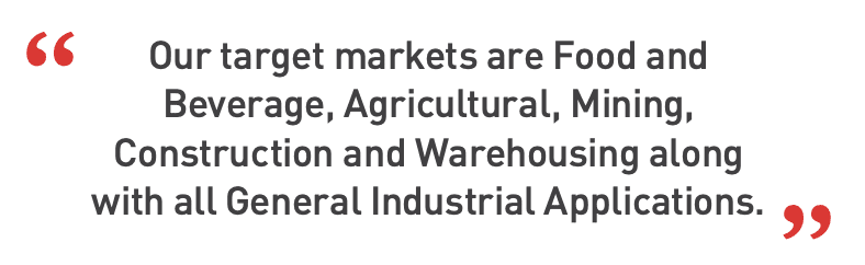 Our target markets are Food and Beverage, Agricultural, Mining, Construction and Warehousing along with all General Industrial Applications.