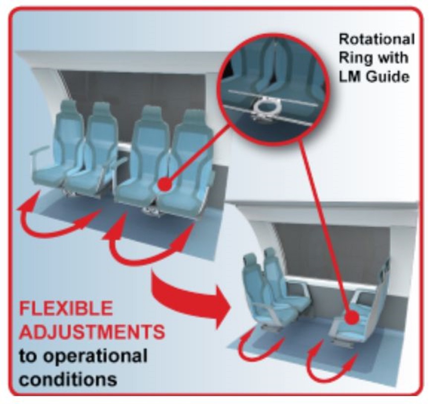 Being an exclusive partner of the DB Ideenzug, THK will showcase their products in the following concepts within the mock-up: