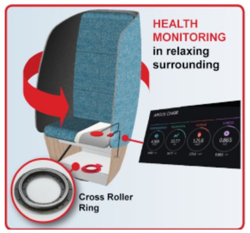 - With the use of the sensing chair technology and THK bearings a complete system for health monitoring in combination with relaxing surrounding was developed.